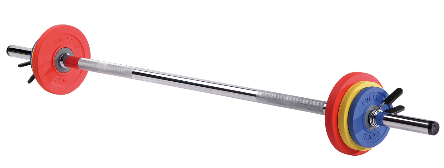 Disques + Barre acier (chromée, 1 kg, Ø28 mm) + 1 paire de stopdisques