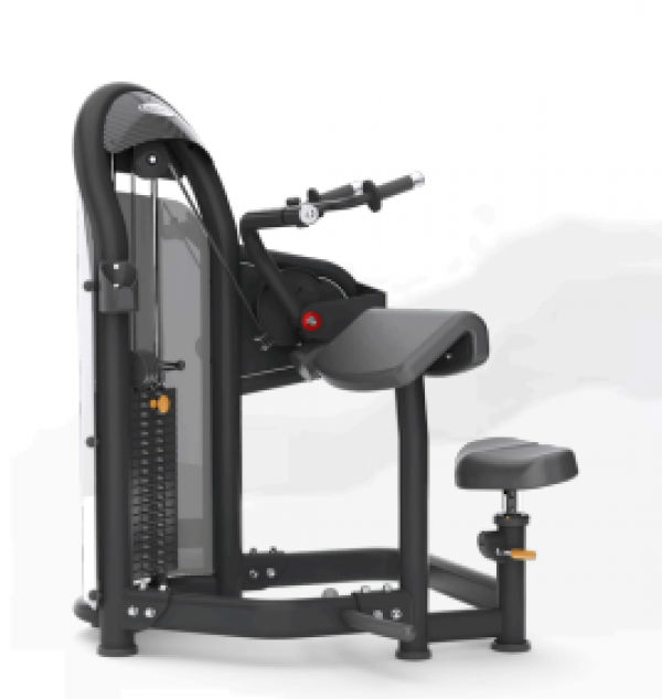 - Dossier et accoudoirs inclinés améliorant la stabilité durant l’exercice